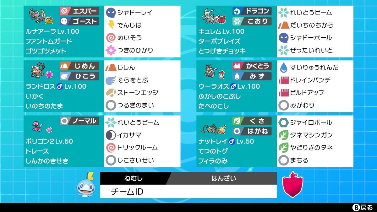 ザシアン受けをルナアーラで崩せるため選出率も高く、構築のエースとして活躍してくれた。